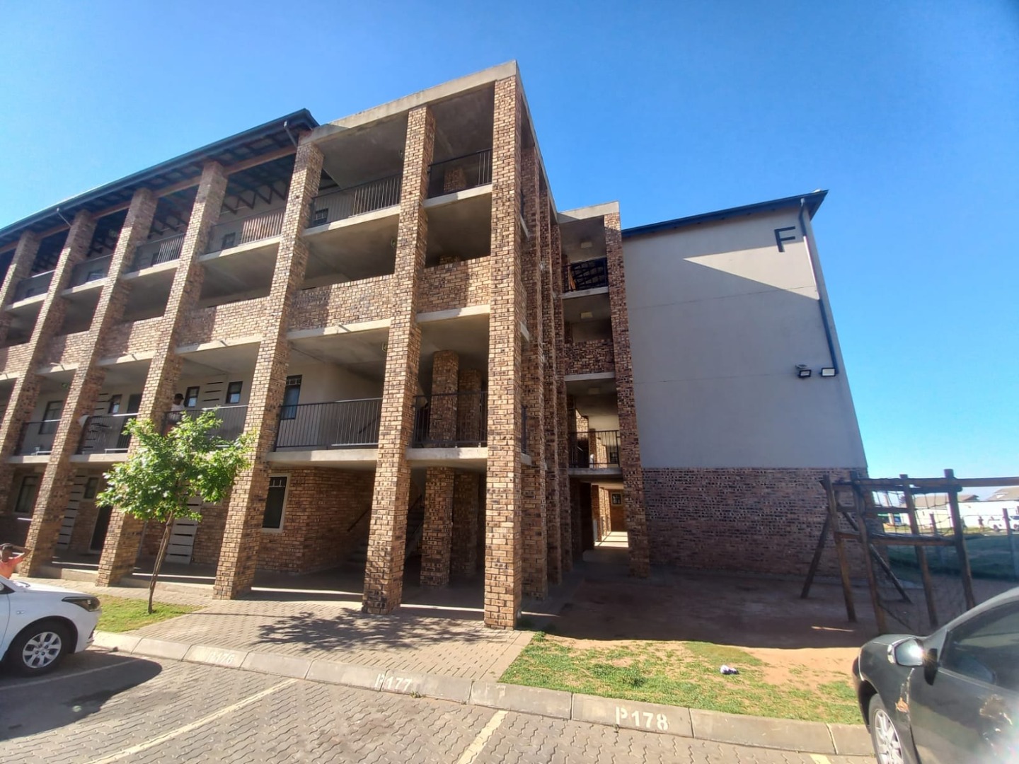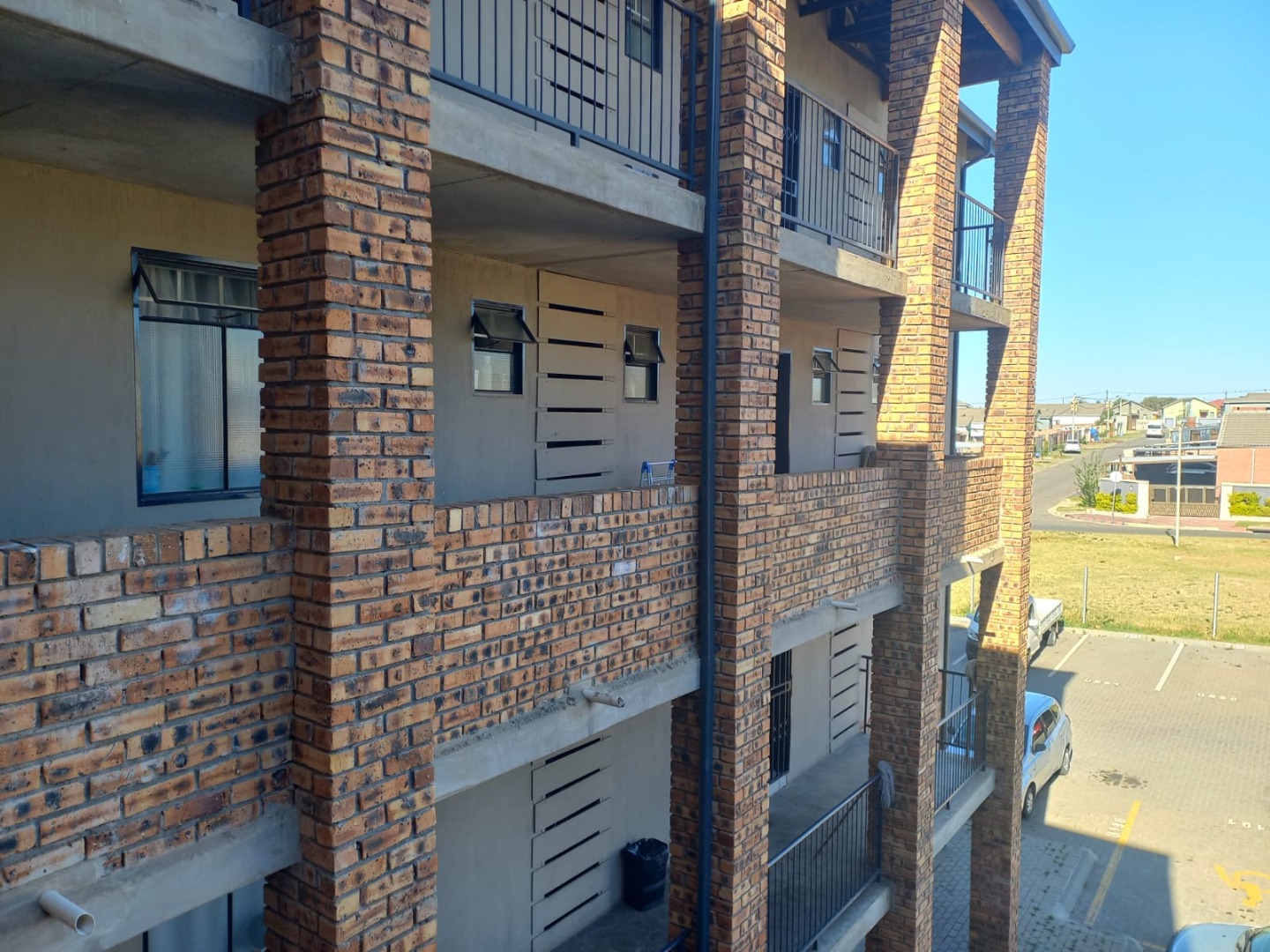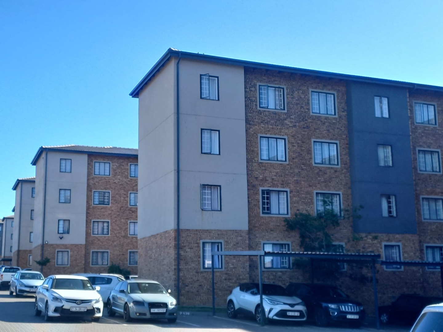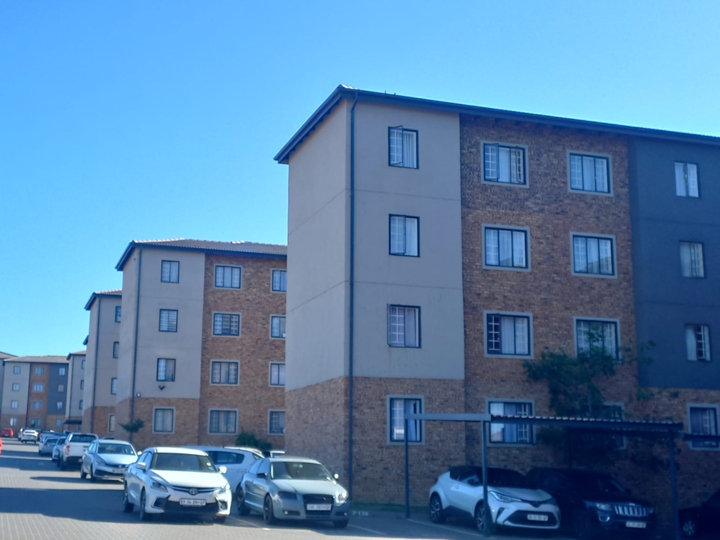 Residents benefit from the convenience of dedicated covered parking, ensuring secure accommodation for vehicles within the estate. The multi-story apartment buildings showcase a modern aesthetic with a durable mix of brick and painted facades, contributing to a pleasant kerb appeal. While green spaces are limited, the complex environment is well-maintained with paved areas.