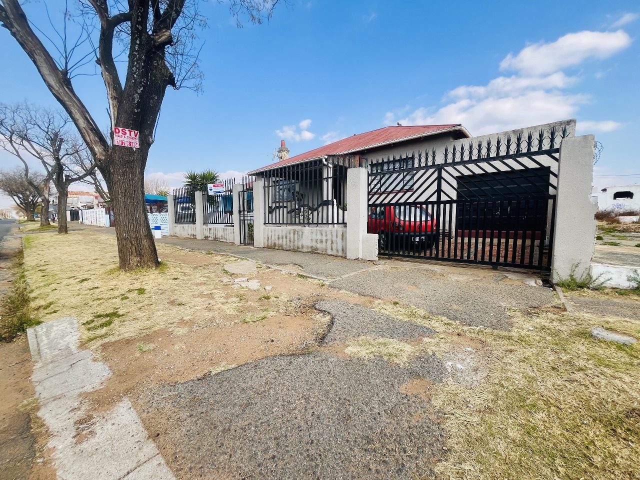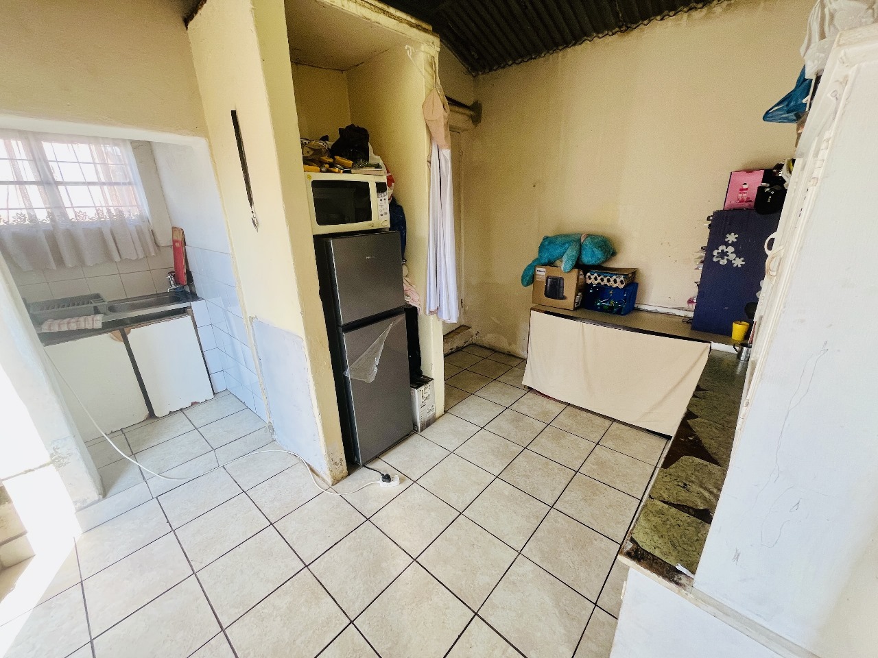 The two bedrooms are fitted with built-in wardrobes offering ample storage and a clean organized feel. Large windows allow for natural light creating a warm and inviting atmosphere. A neatly tiled functional bathroom services the home complete with a bath, basin and toilet. The heart of the home is the spacious kitchen which provides plenty of cupboard and counter space making it perfect for both everyday cooking and entertaining. There is also room for a breakfast table or additional appliances. The lounge offers a cozy and relaxed setting featuring a built-in fireplace that provides warmth during the winter months and serves as a charming focal point for the living area.