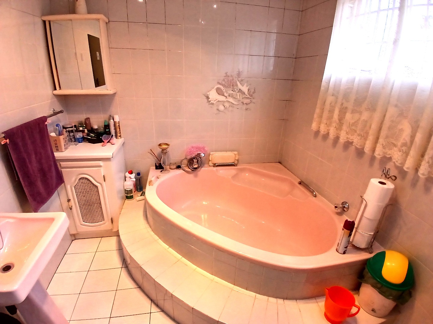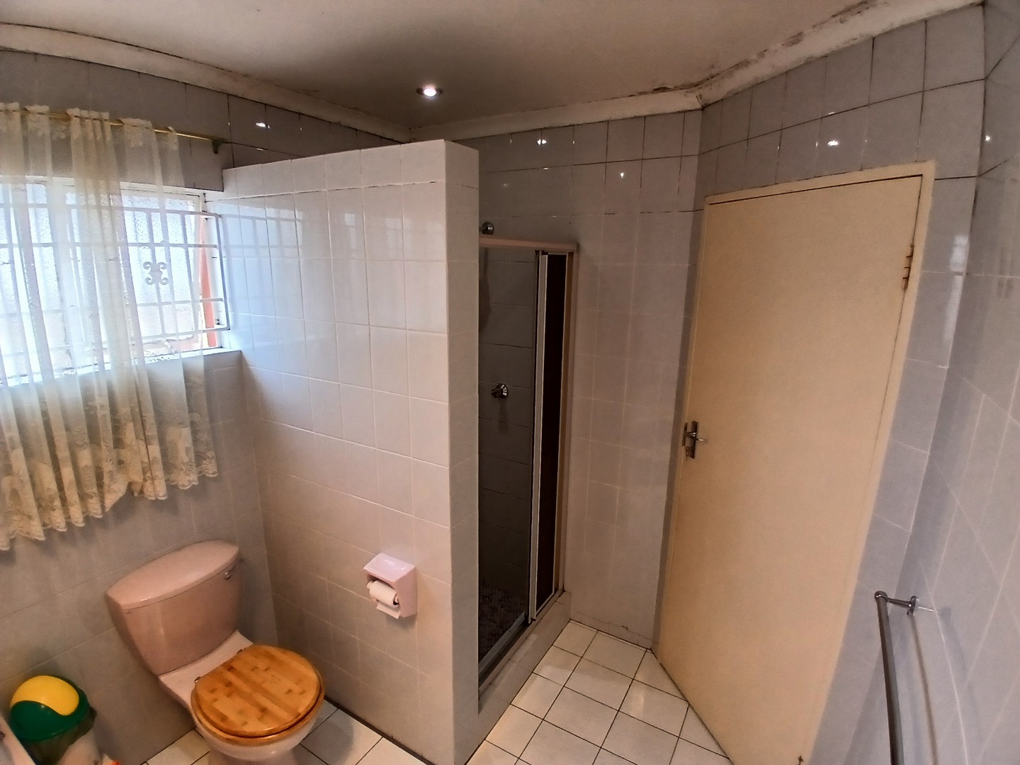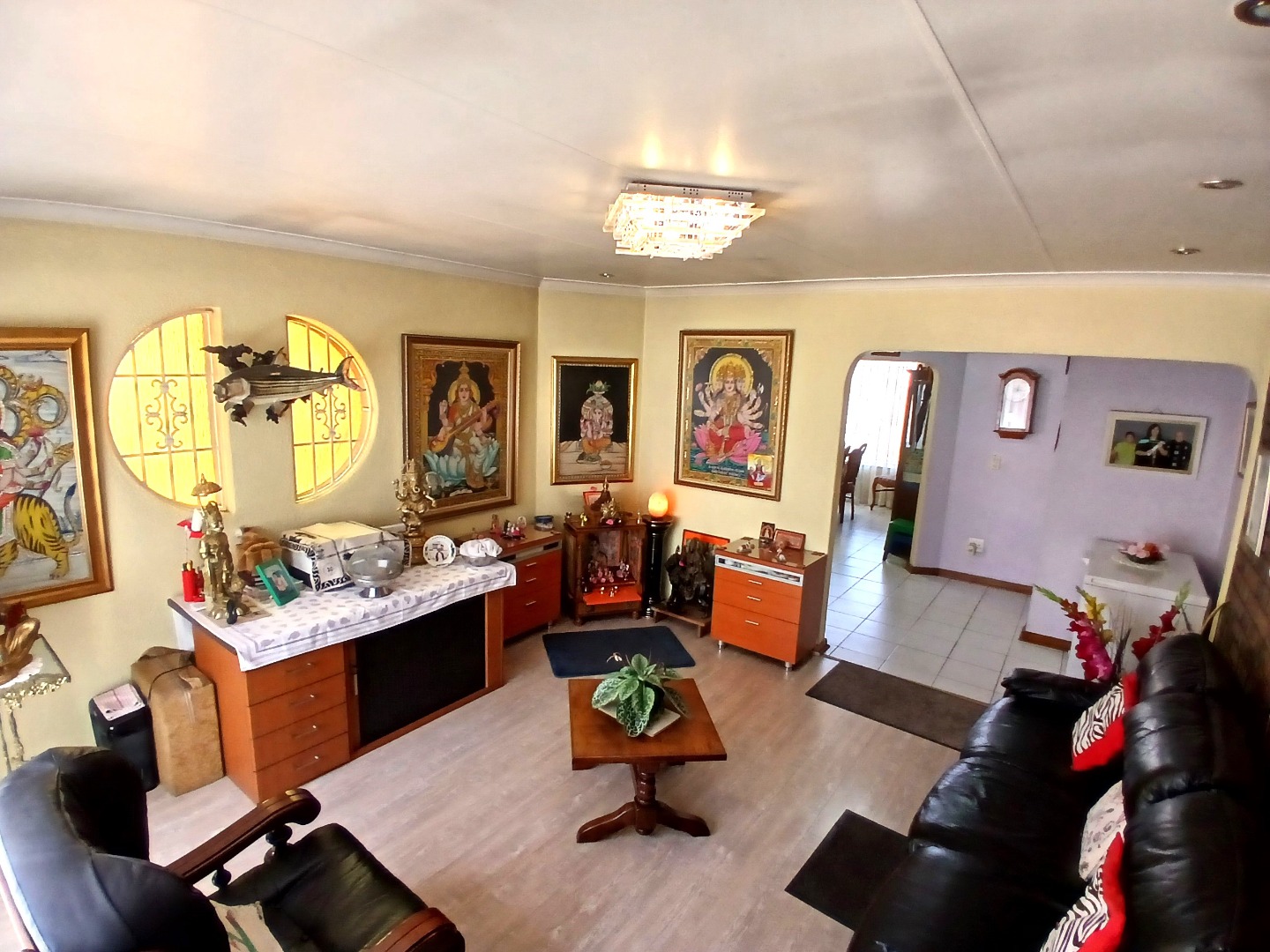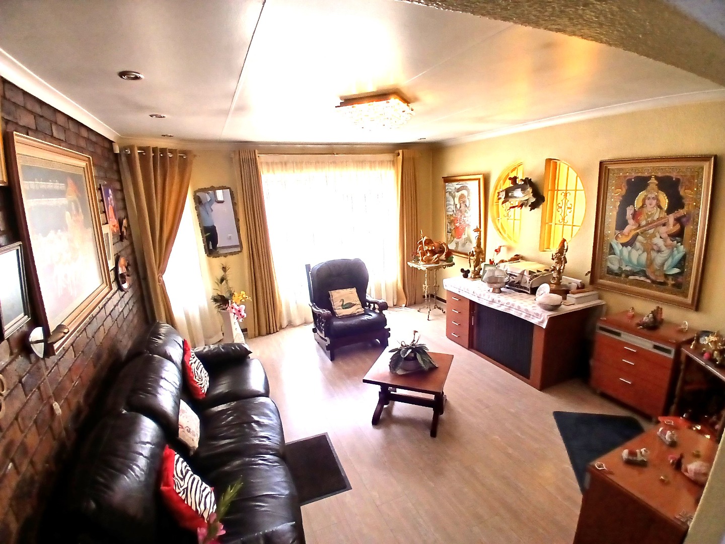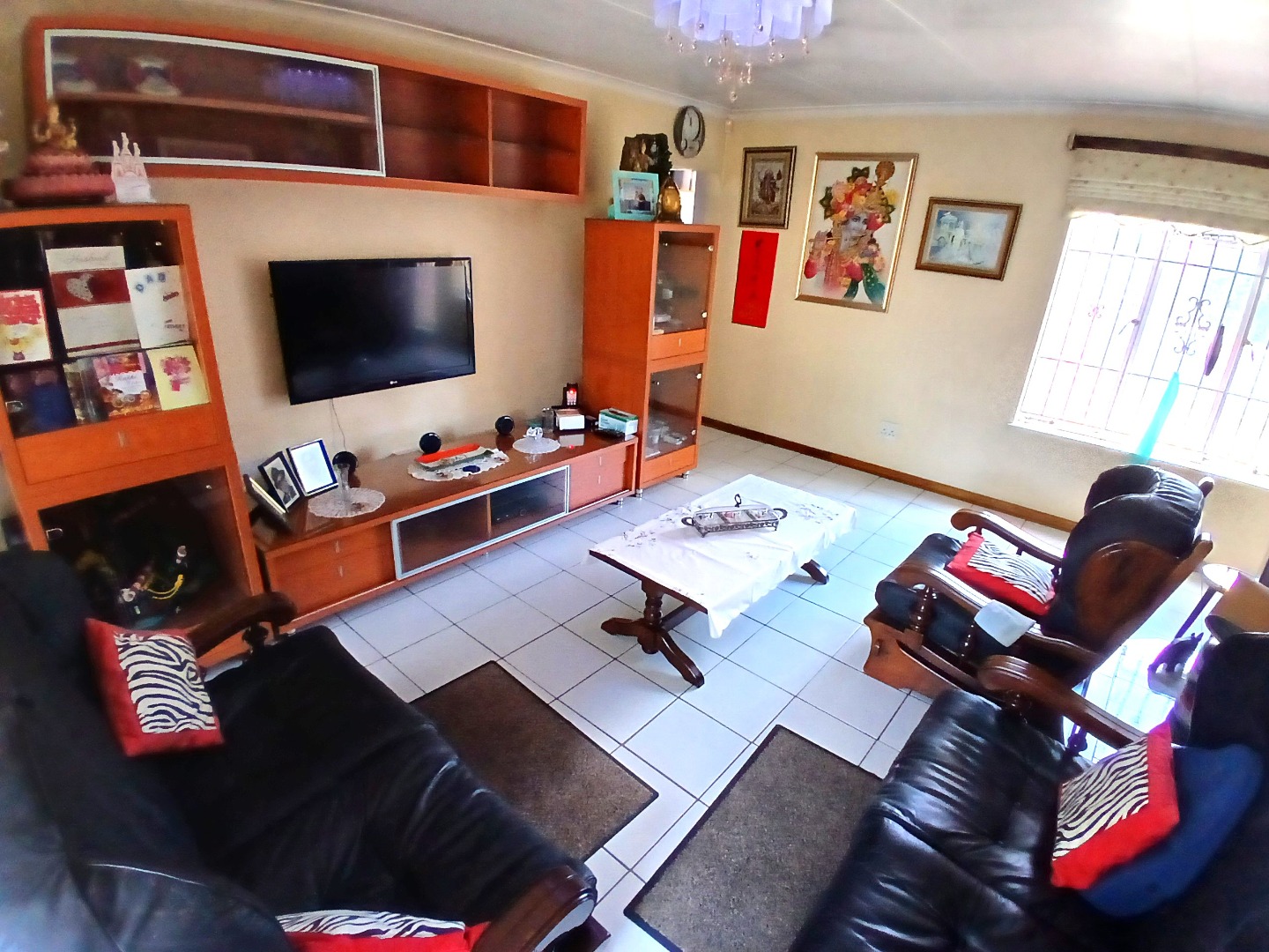 Inside the home offers a practical layout designed for comfortable living. It boasts two generous lounges and a dedicated dining room providing ample space for relaxation and entertaining. The functional kitchen while presenting an opportunity for modern updates features extensive cabinetry, abundant counter space, a built-in oven and a ceramic hob catering to all culinary needs. Durable tiled flooring extends throughout the living areas ensuring easy maintenance.