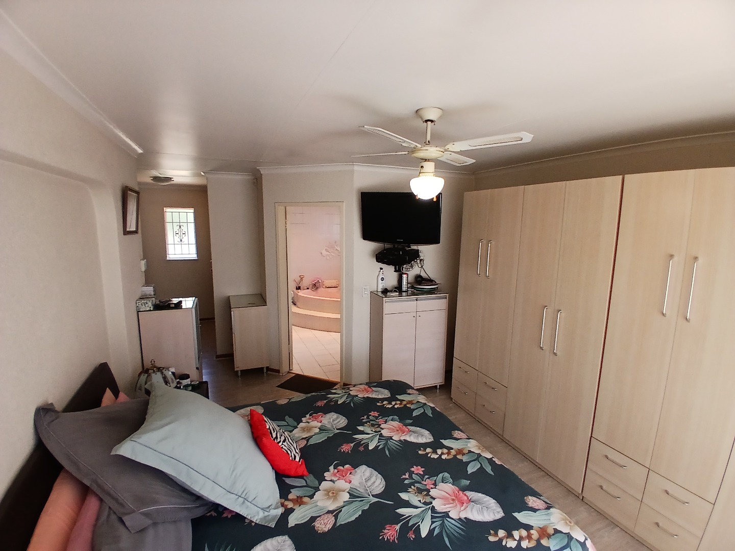Outdoor living is well-catered for with a private patio, a garden and paved areas perfect for enjoying the South African climate. Parking is ample with two garages and two additional parking spaces. Security features include a perimeter fence, security gates and burglar bars on windows providing peace of mind. The property also benefits from fiber connectivity ensuring modern communication needs are met. Pets are welcome making this a true family home.