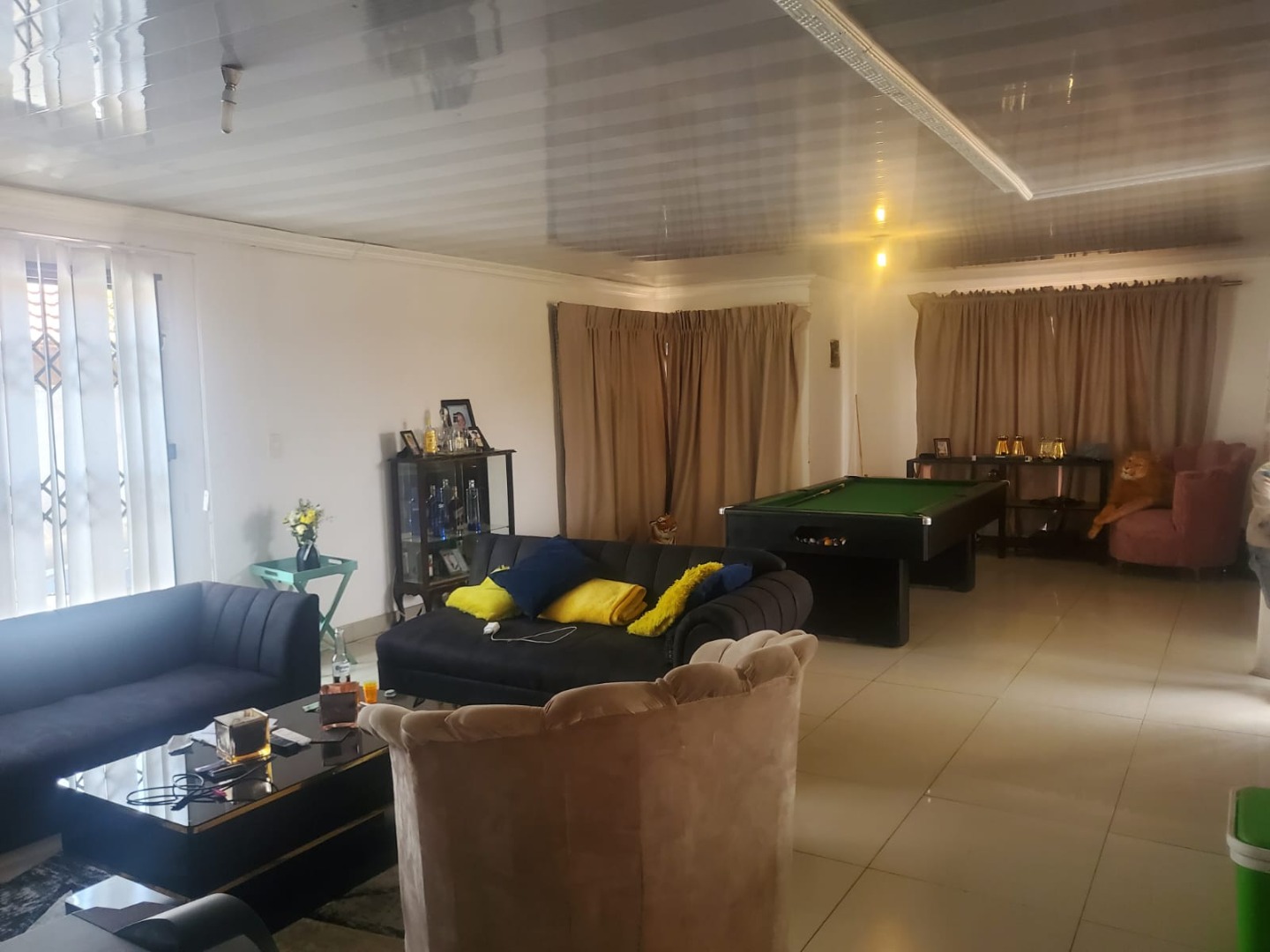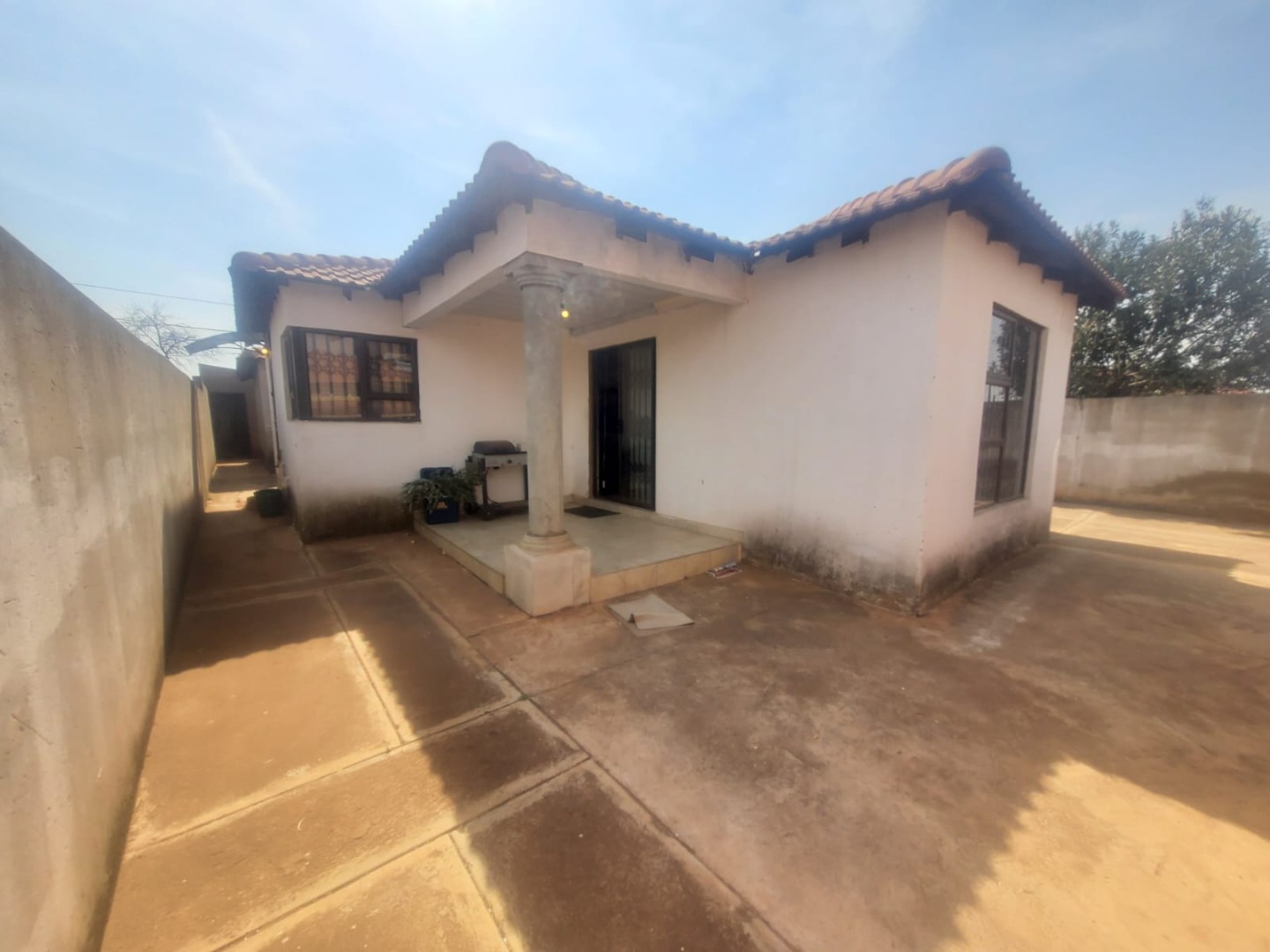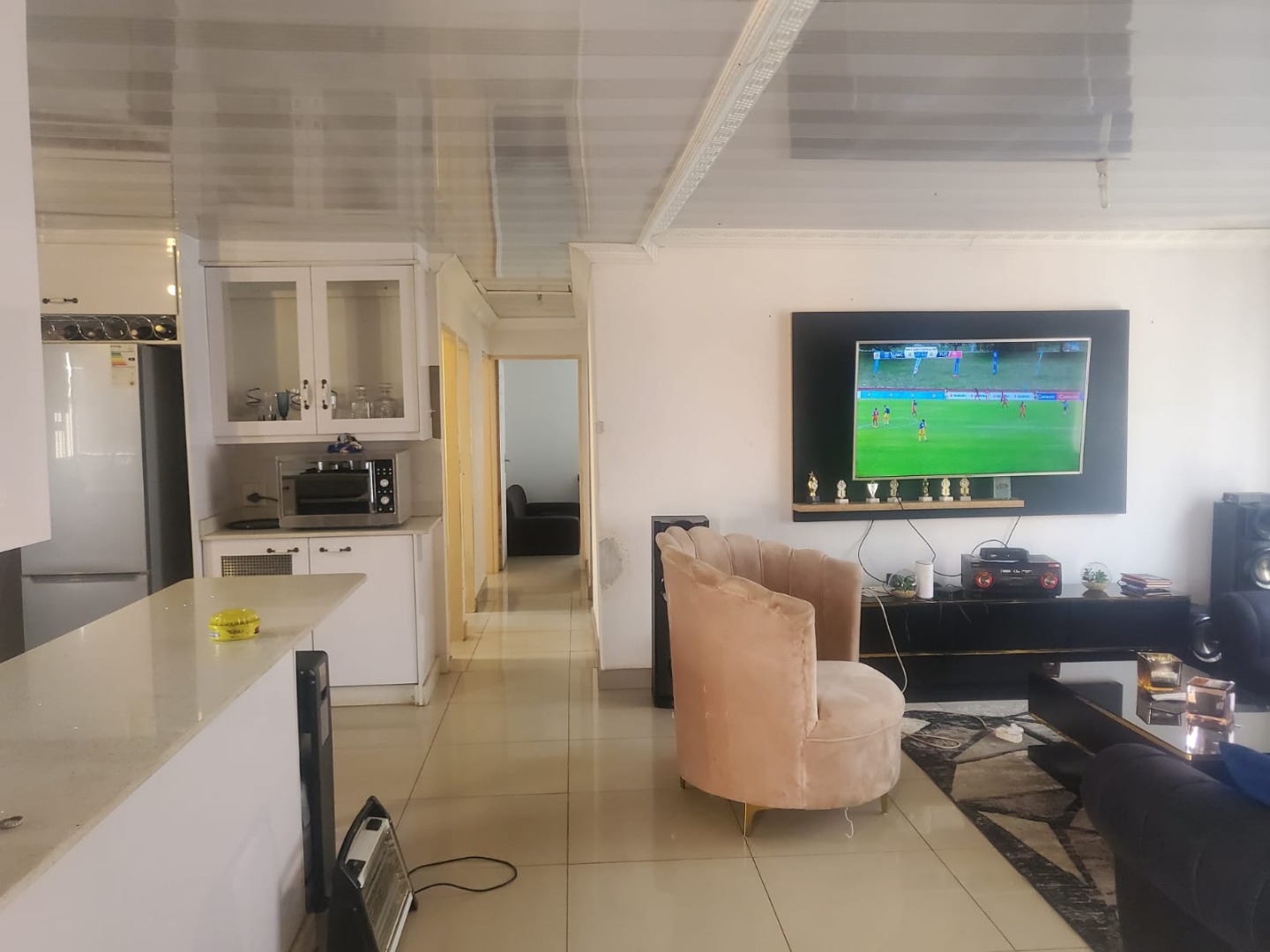 Discover this inviting suburban home located in Protea Glen, Soweto, offering a blend of comfort and practical living. The property presents a modern-style single-story residence with a durable tiled roof and a secure perimeter, featuring brick and metal fencing with both pedestrian and vehicular access gates. A welcoming covered patio provides an ideal space for outdoor relaxation and entertaining. Step inside to an open-plan living environment designed for contemporary lifestyles. The heart of the home is a modern white kitchen, boasting ample storage, a functional island that doubles as a breakfast bar, and sleek tiled flooring. This space seamlessly connects to a dedicated dining area and a comfortable lounge, which also serves as a family TV room. For leisure, a recreation area complete with a pool table offers an excellent entertainment hub. The interior is further enhanced by distinctive ceiling finishes and consistent tiled flooring throughout. This residence features three well-proportioned bedrooms, providing comfortable private spaces for the family. There are two bathrooms, including a convenient ensuite bathroom, ensuring privacy and ease for occupants. The property prioritizes security with visible security bars on windows and security gates on doors, complementing the robust perimeter fencing. With three dedicated parking spaces, this home caters to practical needs. Its suburban location in Protea Glen offers a desirable setting for family living, combining accessibility with a sense of community. Key Features: * 3 Bedrooms, 2 Bathrooms (1 Ensuite) * Open-plan Living and Dining Areas * Modern Kitchen with Island * Dedicated Entertainment Space with Pool Table * Covered Patio * Secure Perimeter Fencing with Gates * Security Bars and Gates for Enhanced Safety * 3 Parking Spaces * Tiled Flooring Throughout
