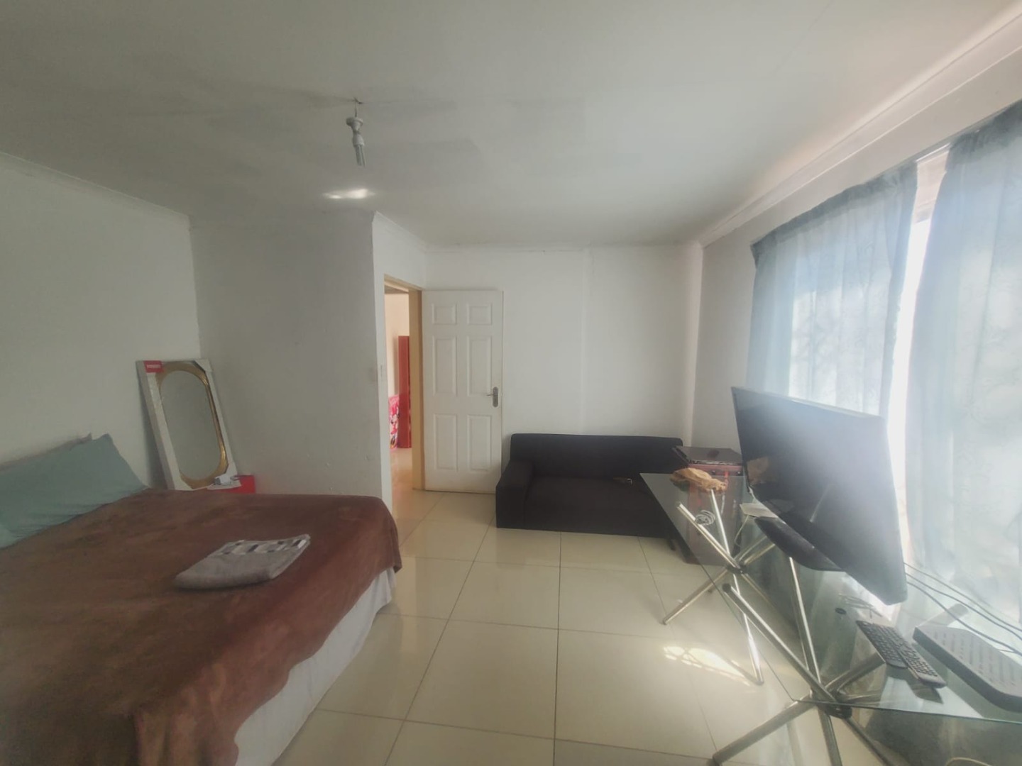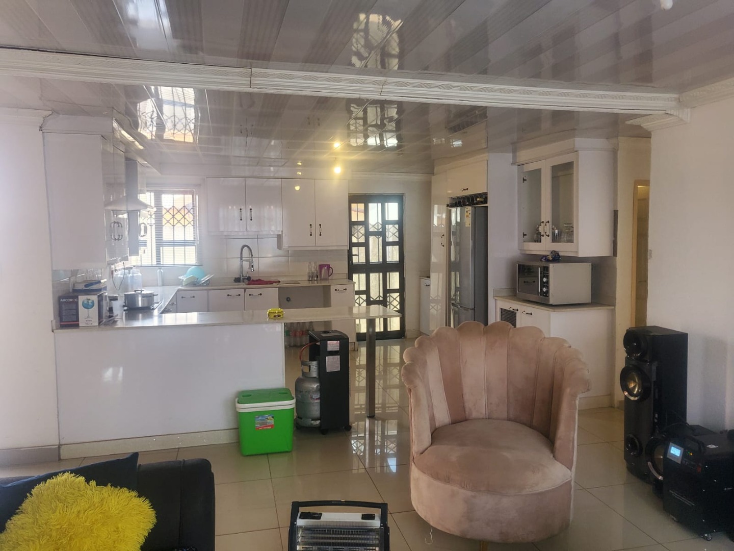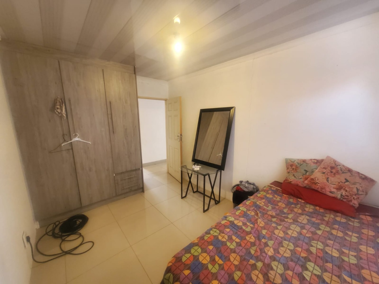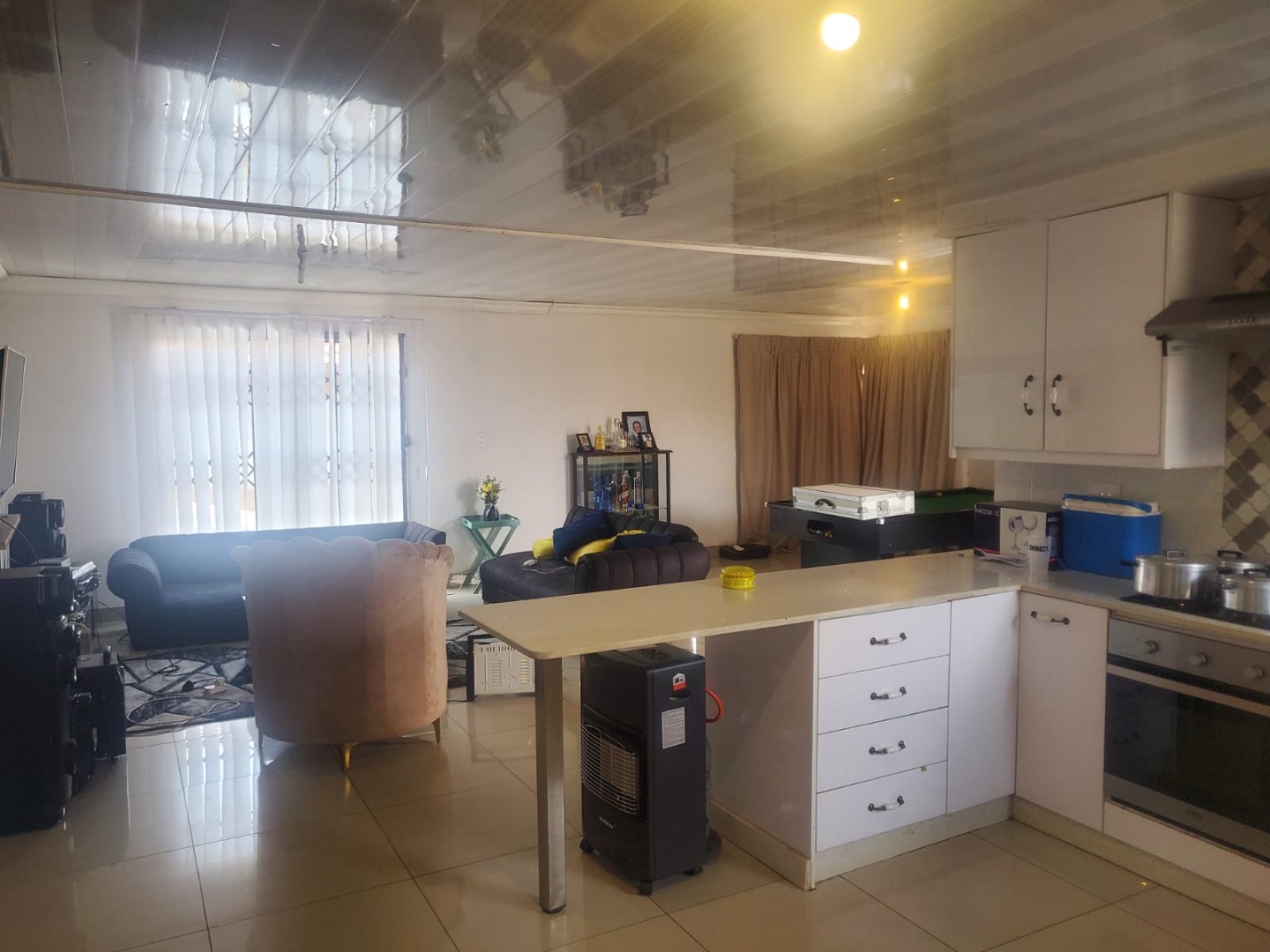 Discover this inviting suburban home located in Protea Glen, Soweto, offering a blend of comfort and practical living. The property presents a modern-style single-story residence with a durable tiled roof and a secure perimeter, featuring brick and metal fencing with both pedestrian and vehicular access gates. A welcoming covered patio provides an ideal space for outdoor relaxation and entertaining. Step inside to an open-plan living environment designed for contemporary lifestyles. The heart of the home is a modern white kitchen, boasting ample storage, a functional island that doubles as a breakfast bar, and sleek tiled flooring. This space seamlessly connects to a dedicated dining area and a comfortable lounge, which also serves as a family TV room. For leisure, a recreation area complete with a pool table offers an excellent entertainment hub. The interior is further enhanced by distinctive ceiling finishes and consistent tiled flooring throughout. This residence features three well-proportioned bedrooms, providing comfortable private spaces for the family. There are two bathrooms, including a convenient ensuite bathroom, ensuring privacy and ease for occupants. The property prioritizes security with visible security bars on windows and security gates on doors, complementing the robust perimeter fencing. With three dedicated parking spaces, this home caters to practical needs. Its suburban location in Protea Glen offers a desirable setting for family living, combining accessibility with a sense of community. Key Features: * 3 Bedrooms, 2 Bathrooms (1 Ensuite) * Open-plan Living and Dining Areas * Modern Kitchen with Island * Dedicated Entertainment Space with Pool Table * Covered Patio * Secure Perimeter Fencing with Gates * Security Bars and Gates for Enhanced Safety * 3 Parking Spaces * Tiled Flooring Throughout