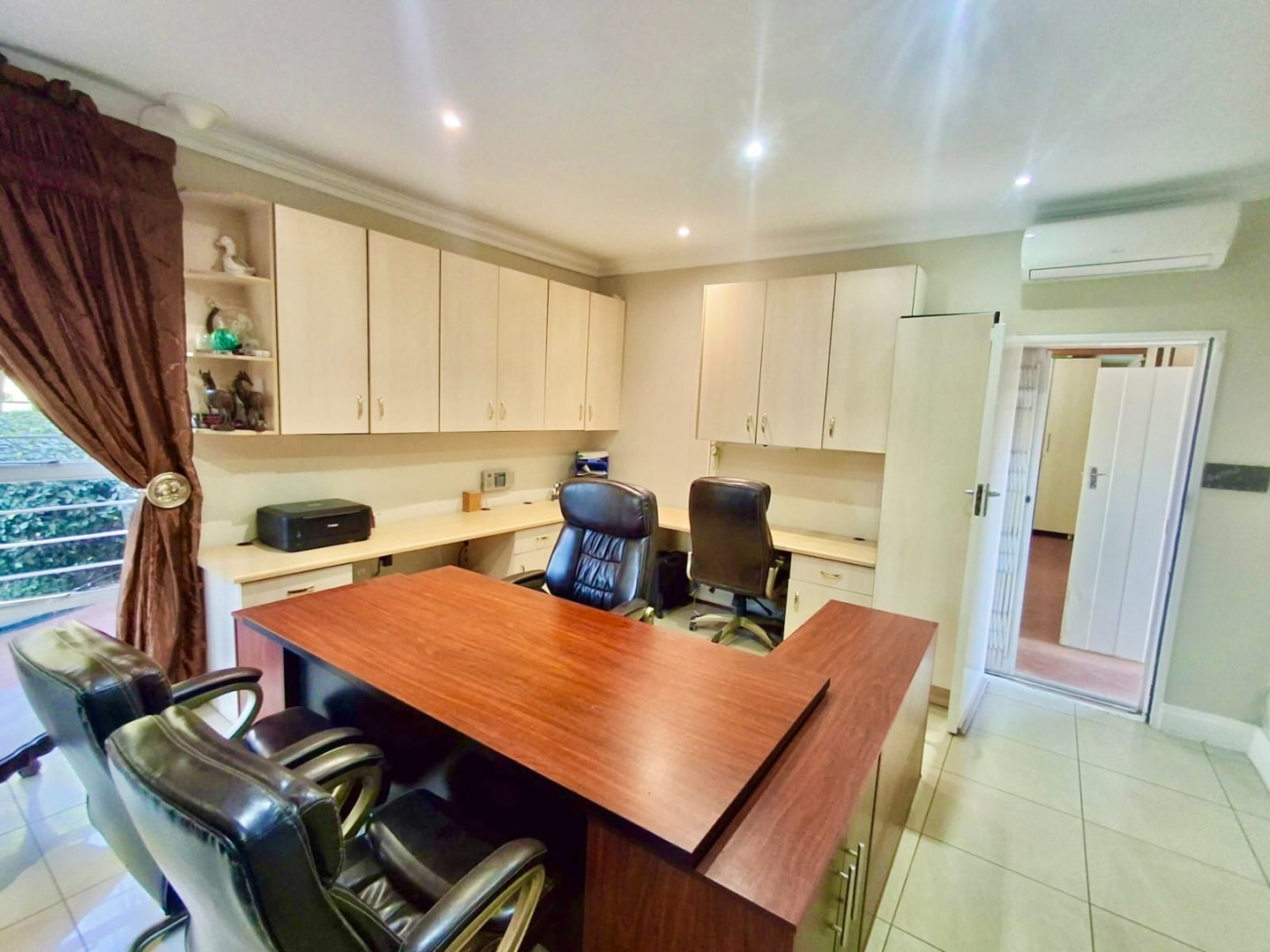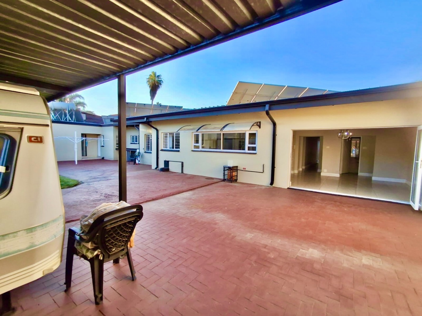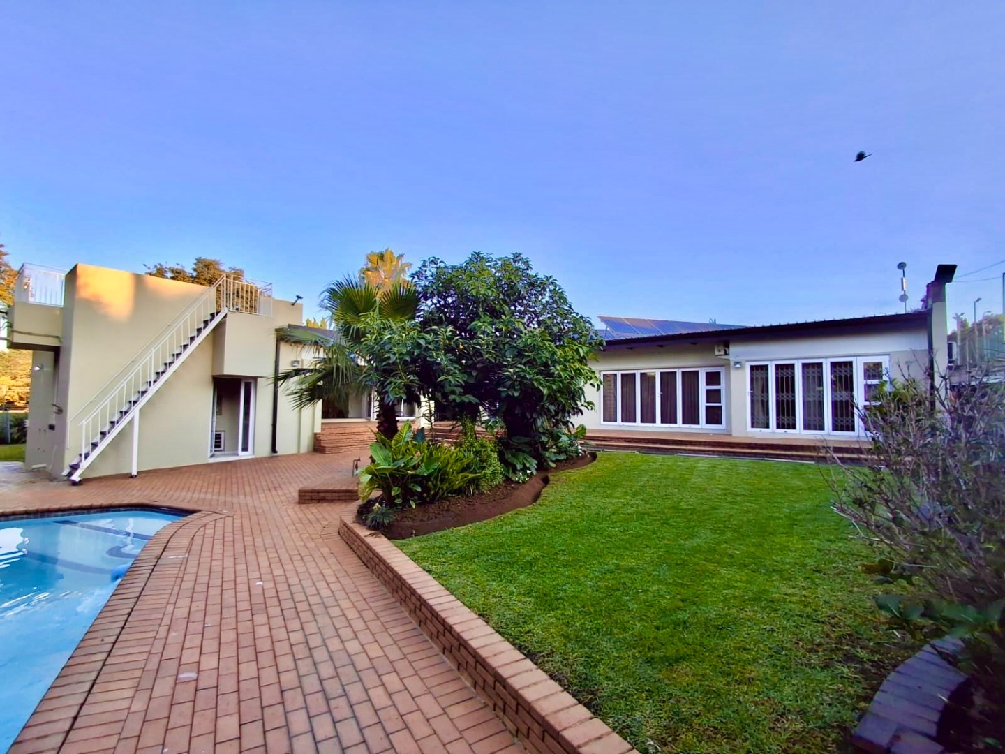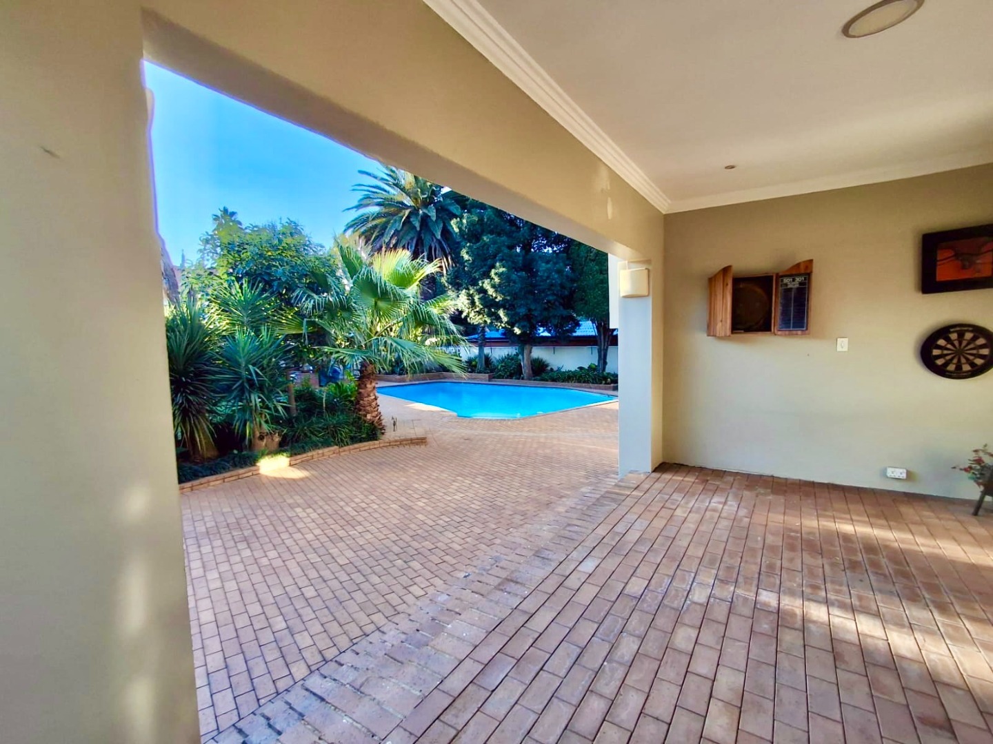 Discover this expansive 4-bedroom, 3.5-bathroom residence available for rent in the desirable suburban enclave of Alberante, Alberton. Boasting a generous 560 sqm under roof on a 2875 sqm erf, this home offers ample space for comfortable living. The interior features two lounges, a dedicated dining room, and a family/TV room, providing versatile living areas. The modern L-shaped kitchen is well-appointed with white cabinetry, an integrated oven, gas hob, and a pantry, complemented by an open-plan layout and breakfast bar. Additional conveniences include a study, a separate laundry room, a flatlet, and domestic rooms with outside toilets. Designed for an exceptional lifestyle, the property boasts a large, clean swimming pool and a spacious, multi-level brick-paved patio with a covered veranda and built-in braai, perfect for outdoor entertaining. Enjoy the lush, private garden, complete with a lapa and a tennis court for active recreation. Pets are allowed, and the home is wheelchair-friendly, catering to diverse needs. Entertainment is further enhanced by a dedicated bar area and ample space for a pool table. Security is paramount within this gated community, featuring 24-hour security, an alarm system, electric fencing, security post, access gate, intercom, burglar bars, and security gates. The property is equipped with modern sustainability features including solar panels, a solar geyser, a battery inverter, and water tanks, ensuring energy efficiency and water resilience. Fibre connectivity is also available, supporting contemporary living. Nestled in this suburban setting, the property offers a tranquil environment while maintaining convenient access to local amenities and transport routes. Key Features: * 4 Bedrooms, 3.5 Bathrooms (1 en-suite, 1 guest toilet) * 4 Garages, 6 Parking spaces * Large Swimming Pool & Private Tennis Court * Spacious Patio with Built-in Braai & Lapa * Modern Kitchen with Pantry & Open-Plan Living * Study, Flatlet, Staff Quarters, Laundry * Gated Community with 24-hour Security & Alarm * Solar Panels, Solar Geyser, Battery Inverter, Water Tanks * Fibre Ready & Pet-Friendly