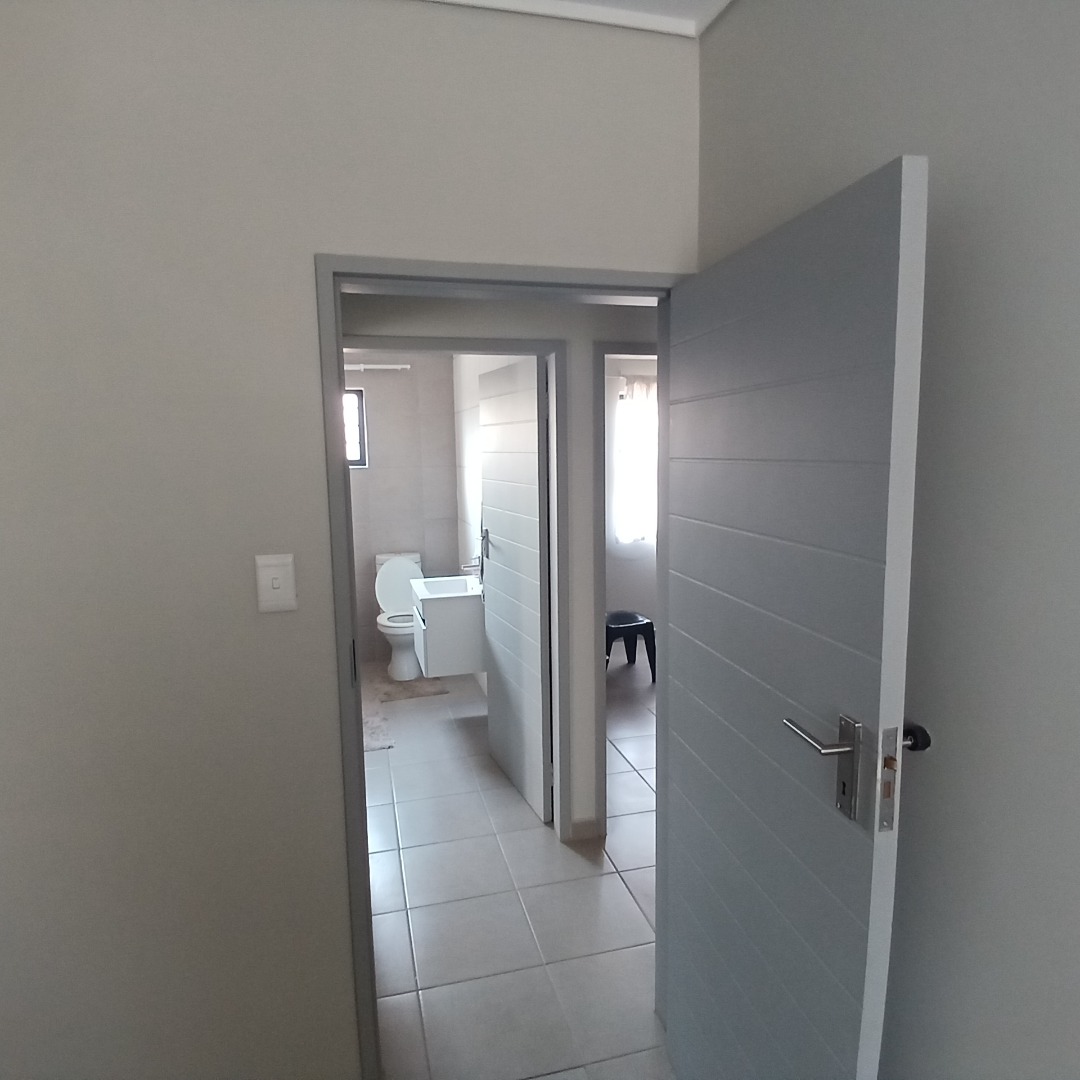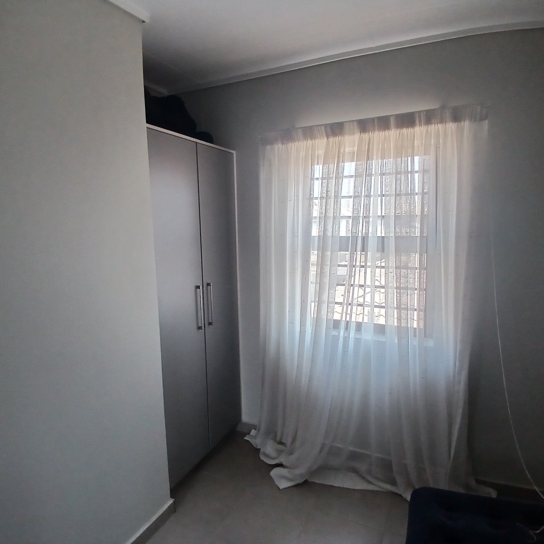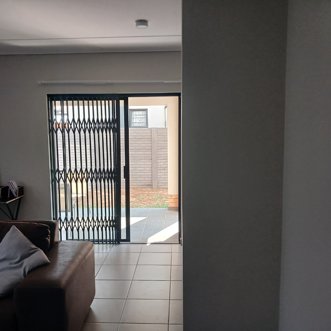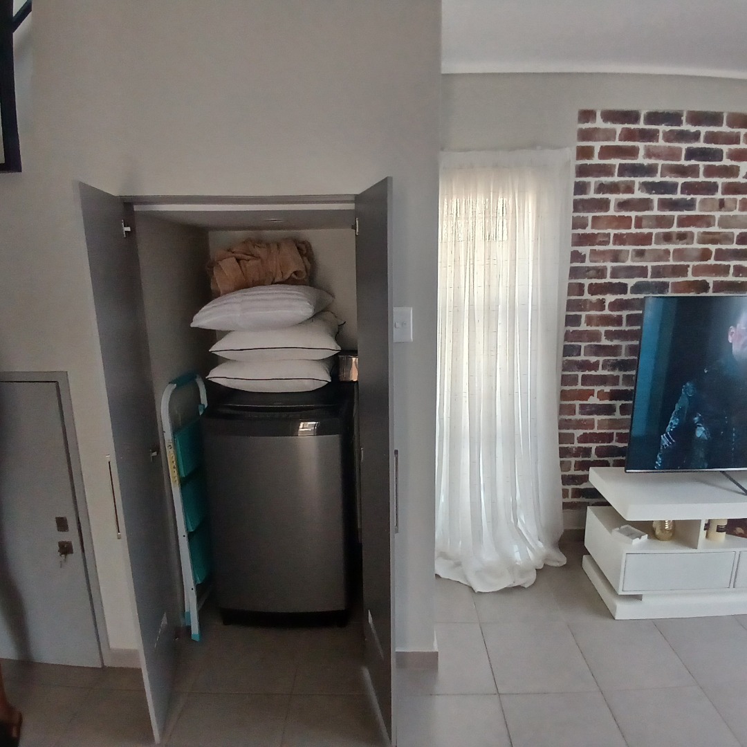 Discover modern living in this inviting 4-bedroom, 3-bathroom home available for rent within a secure estate in Albertsdal, Alberton. Designed for comfort and convenience, this residence features an open-plan layout seamlessly connecting the lounge and dining areas, both adorned with durable tiled flooring. The contemporary kitchen is a highlight, boasting sleek grey cabinetry, speckled granite countertops, a white subway tile backsplash, a built-in gas hob, oven, and extractor fan, along with dedicated spaces for a large refrigerator and microwave. An additional study provides a versatile space for work or hobbies, while a guest toilet adds to the home's practicality. The living area is further enhanced by a stylish faux brick accent wall and large windows that invite ample natural light.
