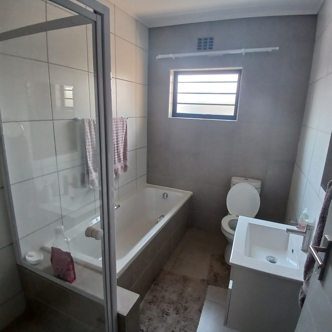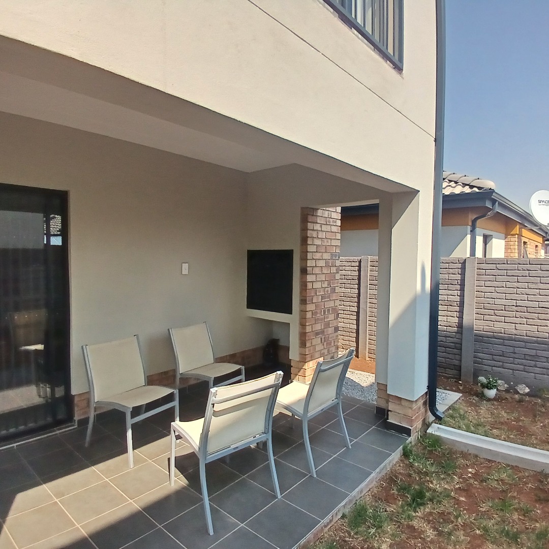 Step outside to a private covered patio, complete with a built-in braai, perfect for outdoor entertaining and relaxation. The property includes a small, walled garden area, offering a private outdoor space, and a balcony for added enjoyment. With two dedicated parking bays and a paved driveway, parking is never an issue. Pets are allowed, making this an ideal home for families with furry companions.