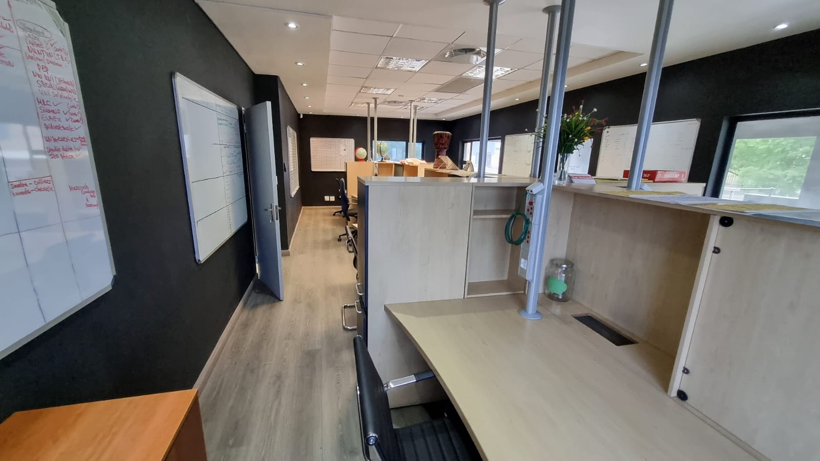 Situated within a secure, well-maintained office park, the premises boast a professional setting with manicured surrounds and 24-hour security. This ground-floor unit features a welcoming reception area, spacious open-plan workspace and private offices or meeting rooms, all finished to a high standard with quality flooring, ceiling tiles and air-conditioning throughout. The layout is both functional and flexible, making it suitable for a wide range of businesses—from start-ups and SMEs to established corporate teams. The space benefits from ample natural light and high-speed fibre connectivity is available. A fully fitted kitchen and modern restrooms are included for staff comfort and convenience. Whether you're looking to host clients or create a collaborative working environment, this unit supports a productive and professional work culture. A standout feature of this rental is the inclusion of 8 dedicated parking bays, a rare and valuable asset in the area.