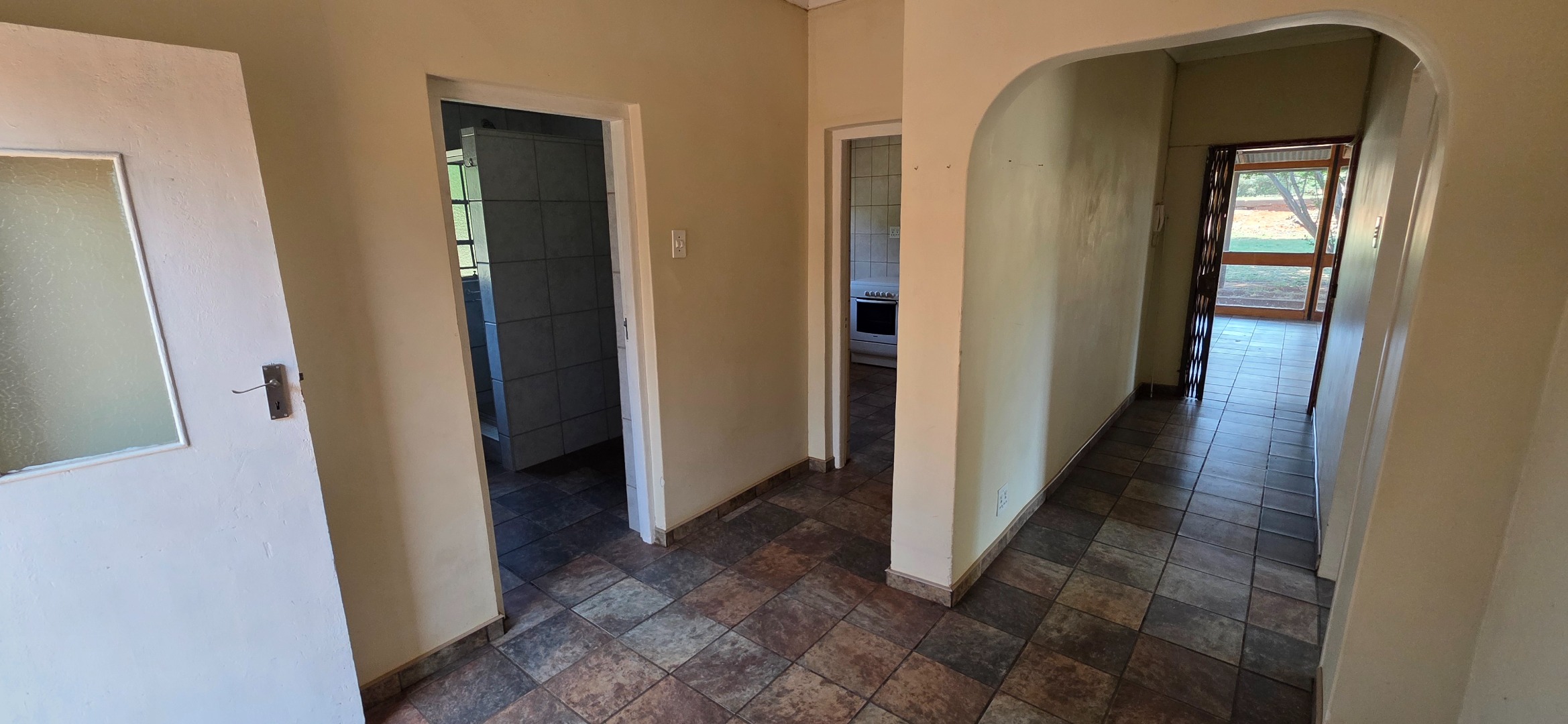 Step outside to a private, tree-filled garden area, perfect for those who appreciate a natural setting. The property boasts a covered patio with an awning, ideal for outdoor entertaining or simply enjoying the fresh air. With two dedicated parking bays and a pet-friendly policy, this home caters to individuals or couples seeking a tranquil retreat with convenient amenities. The presence of a gas geyser contributes to energy efficiency.
